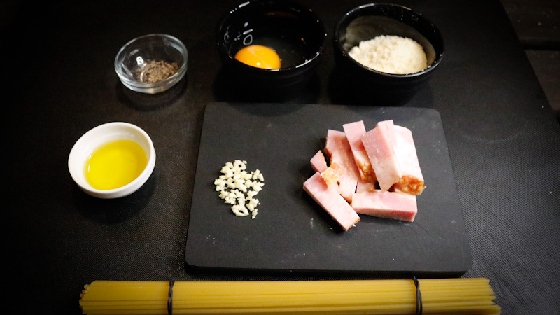 - パスタの茹で上がりとベーコンの焼き上がりが同時になるように調整すると失敗しにくいです。