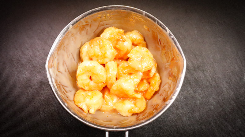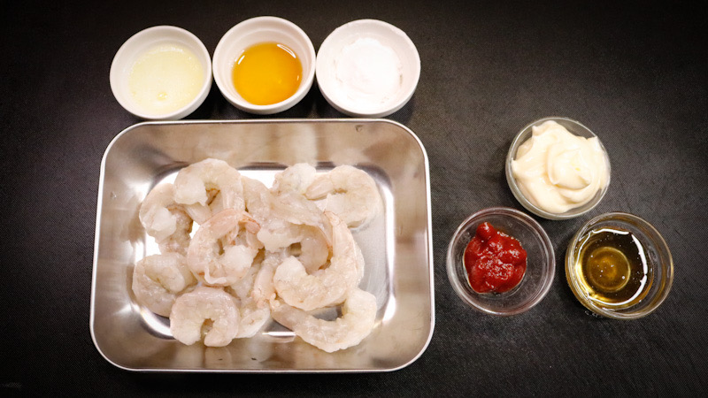 - 下処理のしていないエビを使う場合は下処理をして、水気をよく切っておきましょう。