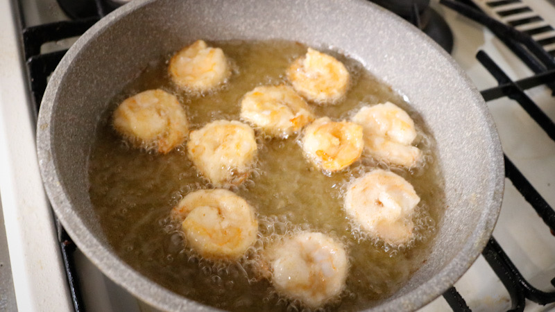 - エビは赤く色付いたらOKです。揚げすぎると身が硬くなるので注意。