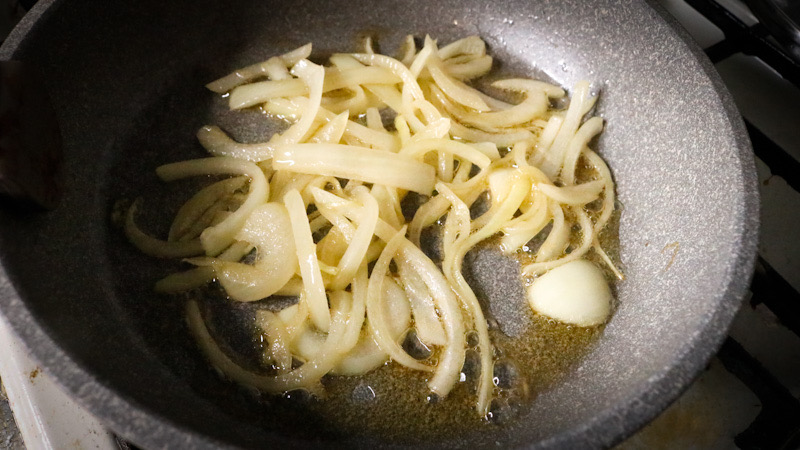 - 玉ねぎを炒める時はごま油と同時にフライパンに入れましょう。